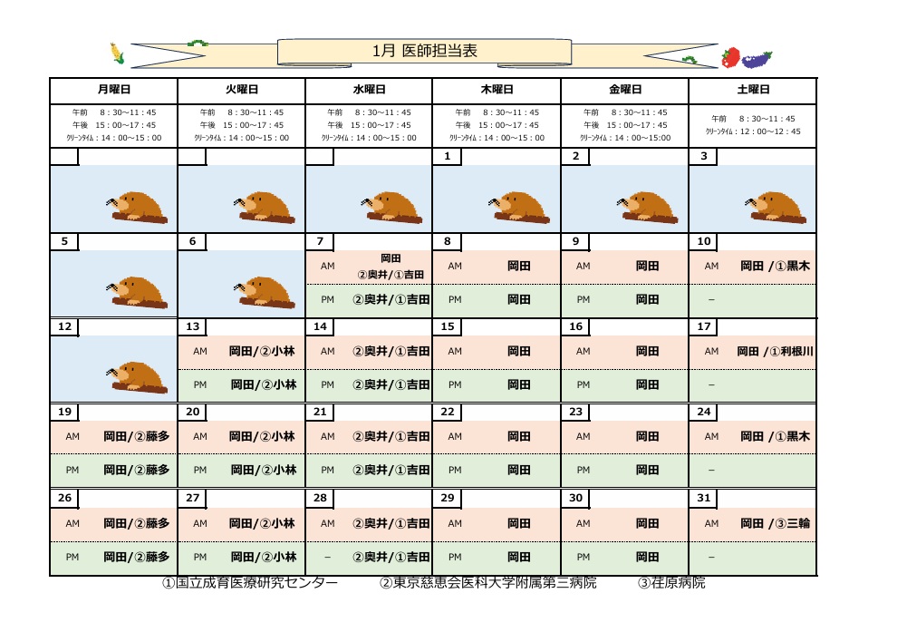 1月の担当医師はこちらからご確認下さい。